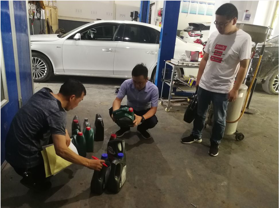 随着社会的进步、经济的发展,汽车已经进入寻常百姓家庭,汽车发动机机油对于汽车就像血液对于心脏一样至关重要,然而有少数商家为牟取非法利益销售假冒知名品牌机油。为进一步规范我县润滑油市场保护消费者合法权益,根据前期摸排情况,县市场监督管理局邀请技术专家于7月18日起集中展开汽修行业润滑油专项检查,共计摸排检查42家汽修厂,其中有9家汽修厂涉嫌销售假冒 “美孚”、“嘉实多”等知名品牌润滑油,该行为涉嫌侵犯品牌注册商标专用权,执法人员随即决定对涉嫌侵权商品予以扣押。
