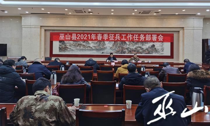 县公安局、高唐街道、当阳乡三个单位分别就如何做好征兵工作作了交流发言。 最后,王大昆从四个方面提出要求:一要提高政治站位,切实增强征兵工作责任感使命感。二要紧盯关键环节,务必严把兵员征集质量关。三要注重整体联动,切实形成齐抓共管良好局面。四要强化监督执纪,坚决纠治基层征兵“微腐败”。 据了解,2021年春季征兵时间为1月至4月,市征办预告我县今年征兵总任务数为150人。其中,大学生征集比例80%、120人,大学毕业生征集比例40%、60人,全日制本科毕业生征集比例12%、18人。 会上,县教委、公安局、卫健委和当阳乡领导还代表全县征兵工作职能部门签订了征兵工作责任书和廉洁征兵责任书。 来源:巫山县融媒体中心 记者 向海燕 陈兵 报道