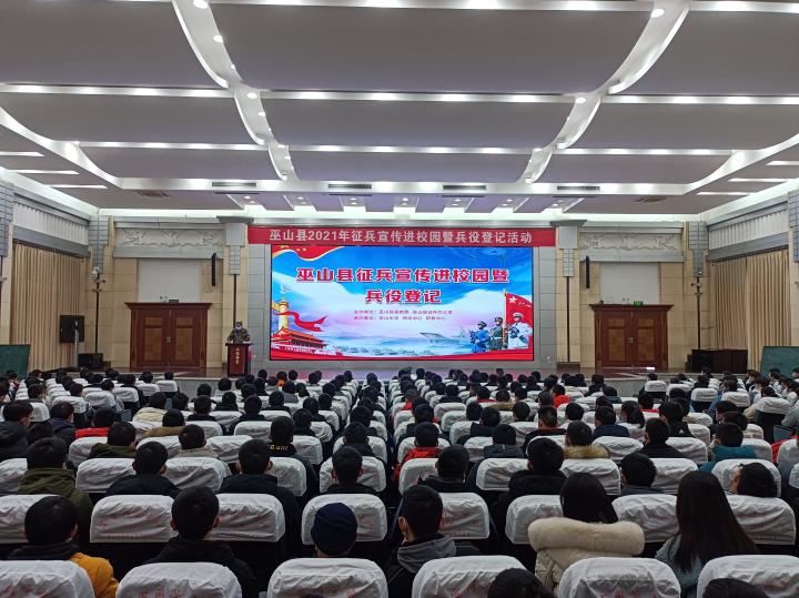 为进一步强化学生国防观念,激发广大学子参军入伍热情,近日,巫山县人武部联合县教委先后走进大昌中学、巫山中学等学校开展征兵宣传进校园活动,号召广大青年学生积极参加兵役登记,踊跃报名应征。
