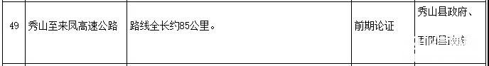 秀山至来凤高速公路,全线长约85公里,前期论证。