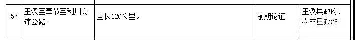 巫溪至奉节至利川高速公路,全长120公里,前期论证。