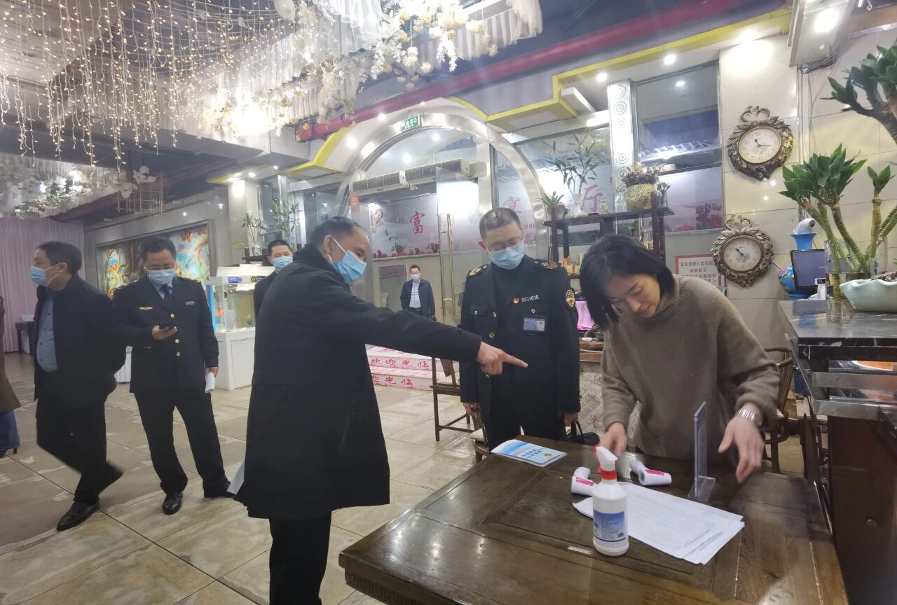 为遏制“无事酒”整治陋习,净化乡风民俗, 坚决落实疫情防控工作, 3月25日, 县委宣传部、县文明指导中心、县卫生健康委、 县市场监管局等相关部门及相关街道 联合对城区内部分酒店(饭店、餐馆) 开展整治“无事酒”专项检查。 检查中检查组一行重点针对城区内部分酒店是否严格遵守疫情防控要求、食品安全是否合格、是否存在安全隐患、环境卫生是否合格等问题展开专项督察,并对于督察中发现的问题,工作人员要求点位相关负责人当场整改到位,对于未发现问题的点位,要求点位继续保持。