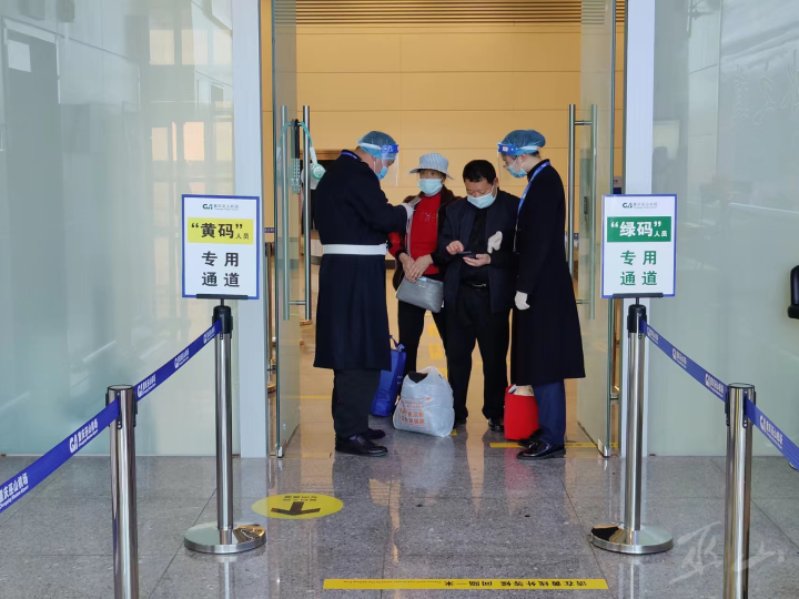 两码一证查验 4月11日,记者在重庆巫山机场大厅看到,无论是机场工作人员还是旅客全部佩戴着口罩,进入机场所有场所人员测温、查验健康码和行程码达到了100%,无论是出发口、到达口、候机厅,一线保障人员按标准配备“加强四件套”防护。同时,对所有进出港旅客依次查验“两码一证”(行程码、健康码、48小时内核酸阴性证明)、采用红外线测温仪与人工手持测温仪相结合的方式对旅客进行测温,并督导出港旅客填报“社区报告二维码”、进行现场核酸检测。 据重庆巫山神女峰机场有限公司安全质量部负责人仲叶青介绍,重庆巫山机场为了做好疫情防控工作,全体员工已经进行了加强针的接种,现在每隔一天开展一次核酸检测,确保员工身体健康,每天上岗之前,对员工的两码一证进行查验并进行体温检测,体温正常才能上岗,并按照既定的标准做好个人防护,再到岗位上开展工作。