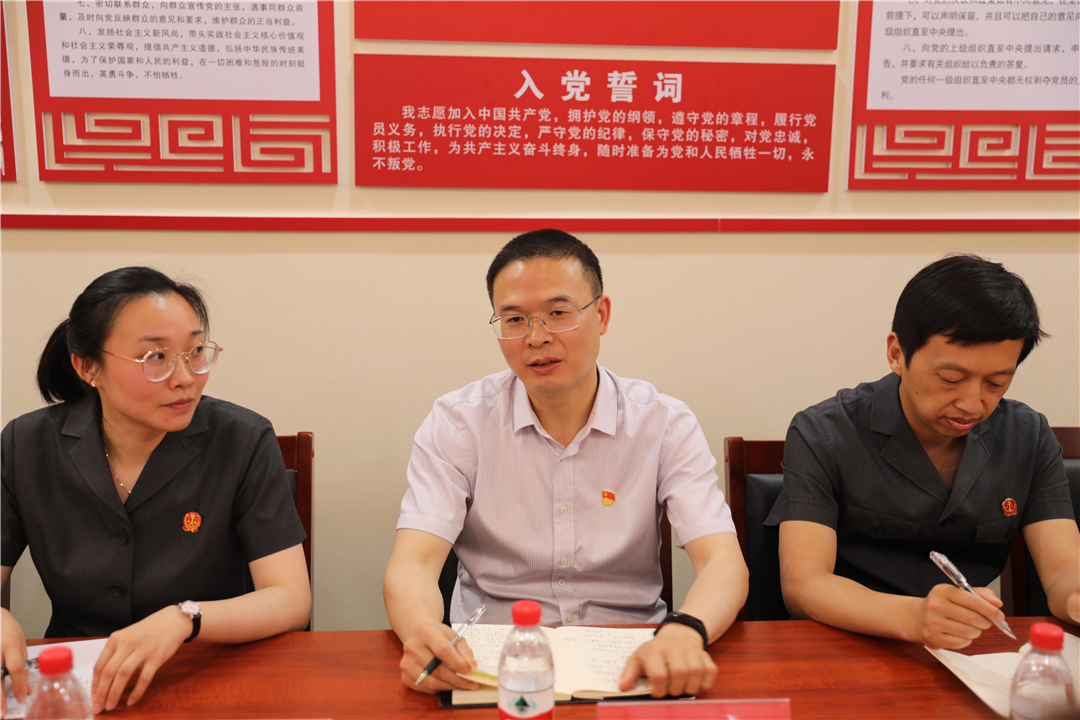 在县特殊教育学校党员活动室,吴美来院长带领全体党员重温入党誓词,再次以铮铮誓言展示党员们守初心、担使命的信心和决心。随后,双方就如何加强特殊教育及未成年**益保护工作进行深入交流座谈。吴美来院长强调:一积极开展支部联建,激发党建活力