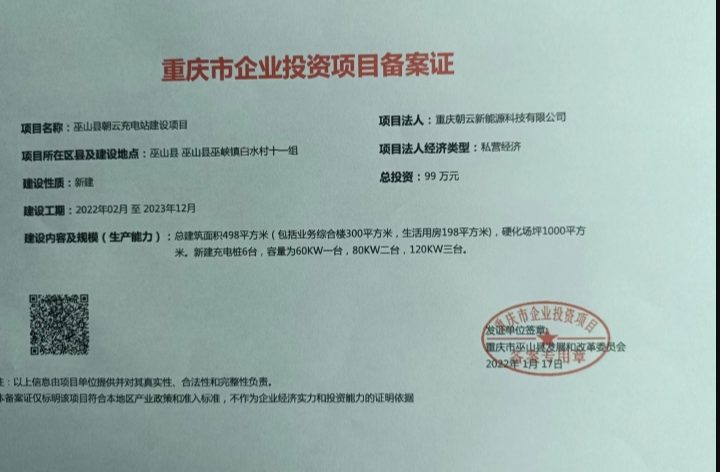 详细描述 :巫山高速引道(二高外砍),新能源汽车充电站项目已经流转土地并在县发改委备案,有意转让或者招商。 联系电话:15084450606