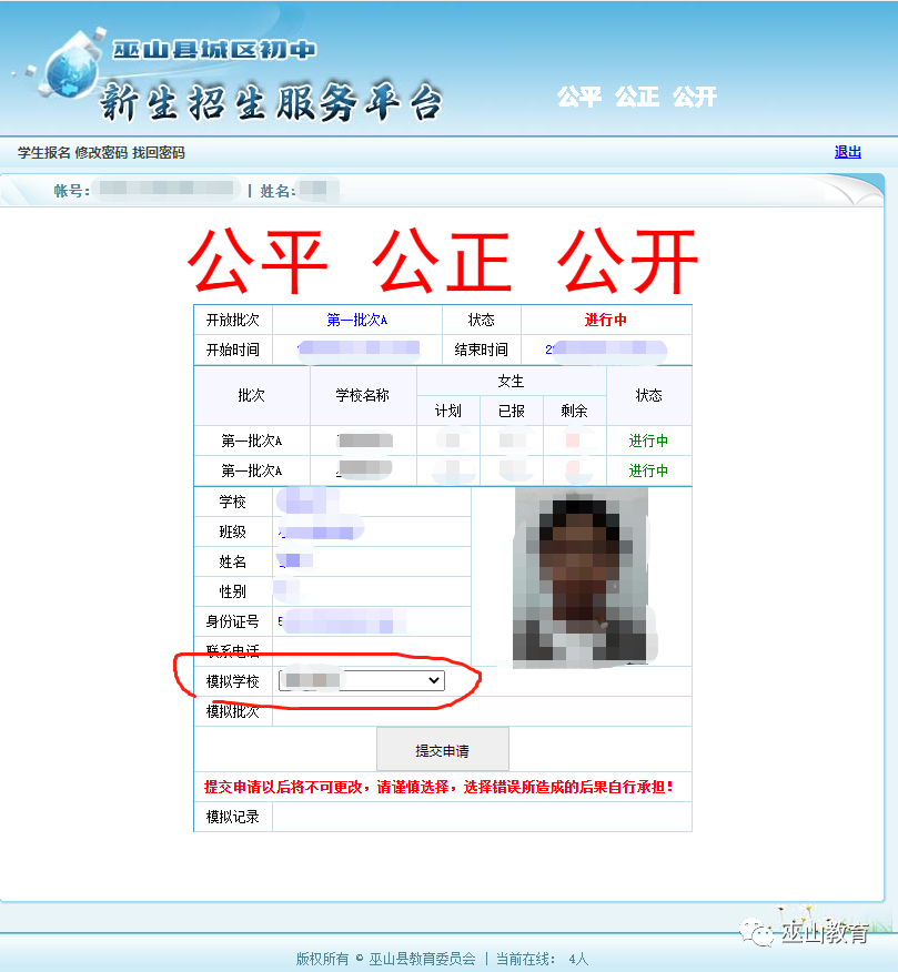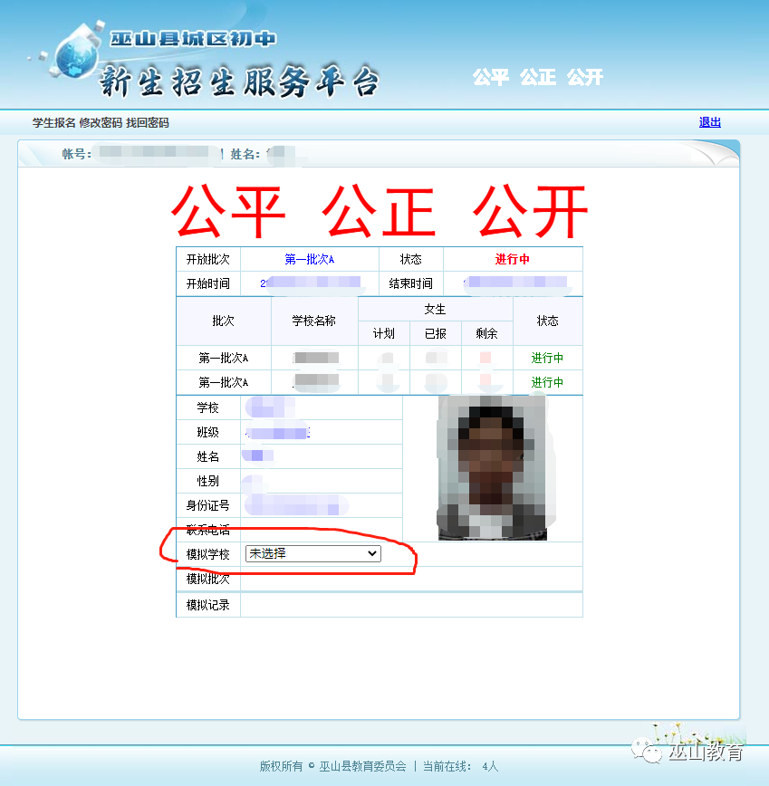 5. 某批次结束报名。已结束时,学生登录时将不能选择报名学校; | 来源:巫山教育