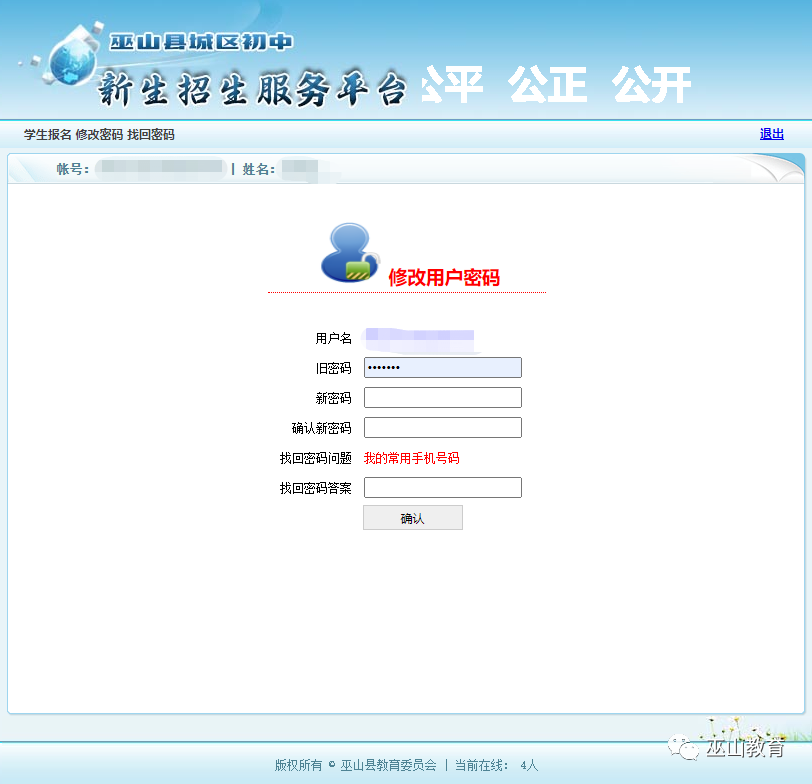 2. 输入学生身份证号,然后点“校验”,如果有错会有提示; 3. 输入学生真实姓名; 4. 填写以前设置的申诉问题答案; 5. 填完完成以后,点击“确定”按钮,系统如果判断以上三项都正确,则自动显示出设置的密码;