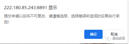 点击“提交申请”,系统将弹出一个提示信息,提示提交申请以后将不可更改,请谨慎选择,选择错误所造成的后果自行承担。