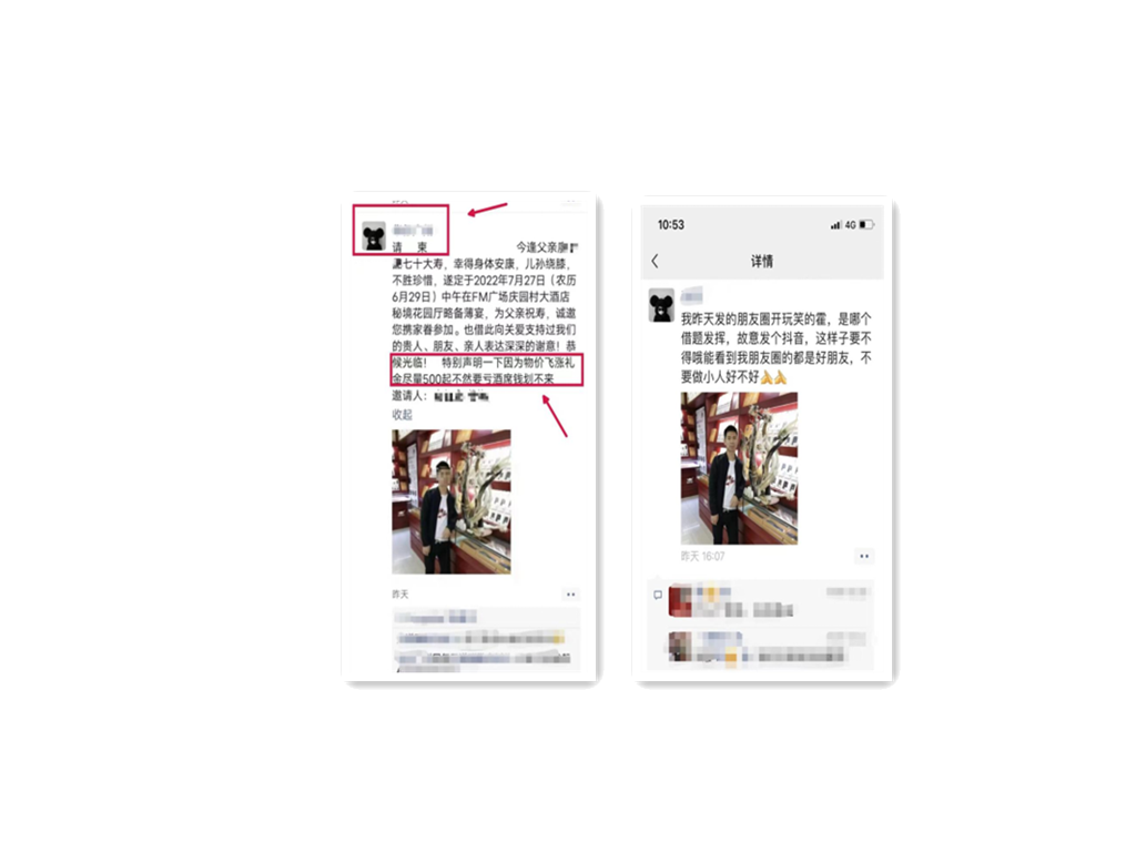 本人拟在2022年7月27日设宴,为父亲七十岁生日祝寿。但好友在发朋友圈宴请时,恶作剧的添加了“特别声明一下,因为物价飞涨,礼金尽量500元起,不然要亏酒席钱划不来”这句不当言论,引发网友关注,在社会上造成不良影响。在此,特向广大市民朋友致歉。