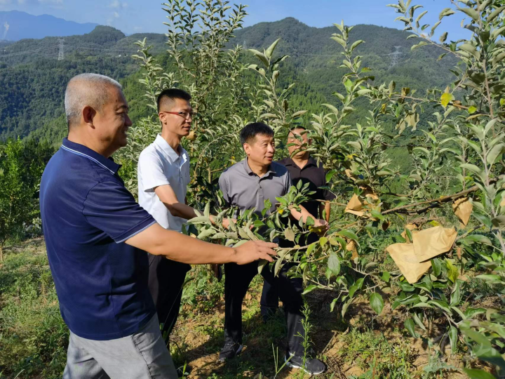 8月10日,在县农业农村委挂职的烟台农业专家来到骡坪镇玉水村,现场考察“烟台苹果”在巫山试种情况。 2019年,骡坪镇玉水村根据东西部协作工作部署,从烟台引进烟富3、维纳斯黄金、鲁丽、红露、PG70等12个苹果品种,试种20亩。目前引进的烟台苹果品种已挂果,早熟品种已成熟,口感良好,试种取得初步成功。